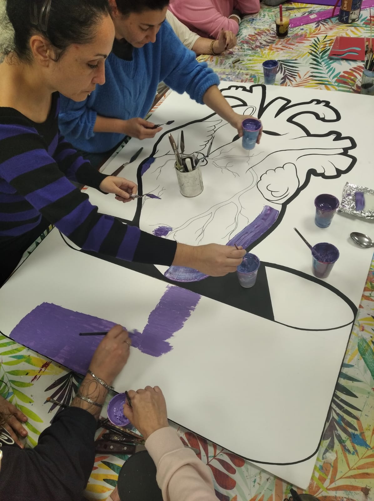 Por lo general, los y las participantes trabajan de forma individual en sus creaciones a lo largo del curso, sin embargo, todos los años nos gusta llevar a cabo una obra grupal que posteriormente exhibimos en exposiciones o utilizamos en eventos que realizamos con la intención de visibilizar la importancia del cuidado de la salud mental. Con este tipo de actividad pretendemos generar una mayor cohesión de grupo y una sensación de pertenencia al mismo, de tal forma que cuando finalizamos la obra nos damos cuenta de lo importante que ha sido la participación de todos para alcanzar ese resultado.